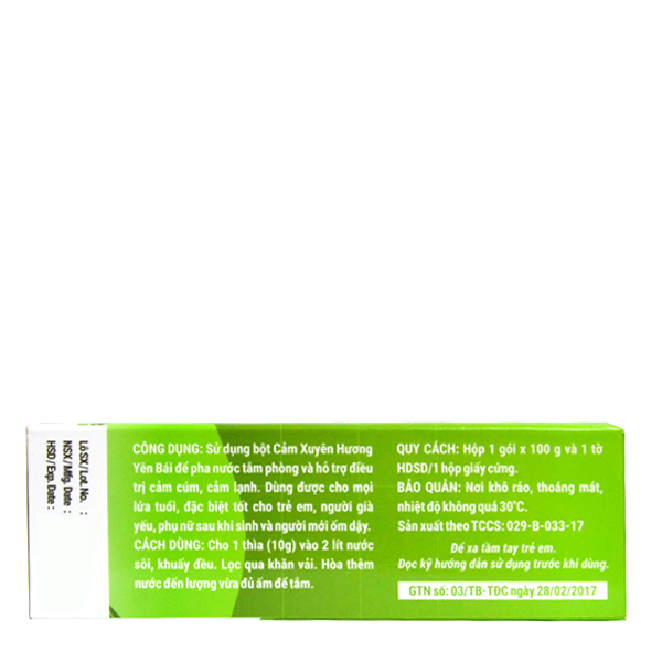 Manufacturer: Yen Bai Pharmaceutical Joint Stock Company (YPHARCO)