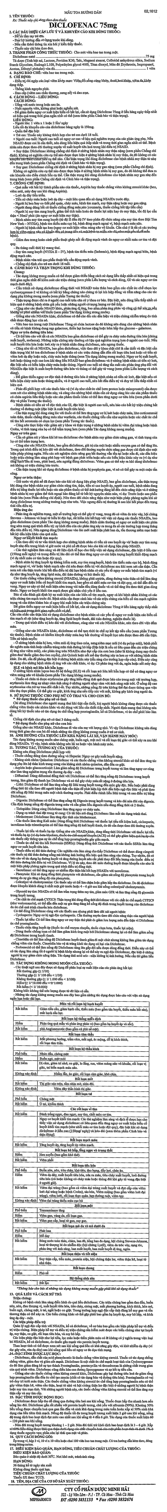 • Để giảm thiểu nguy cơ xuất hiện biến cố bất lợi, cần sử dụng Diclfenac 75mg ở liều hàng ngày thấp nhất có hiệu quả trong thời gian ngắn nhất có thể.